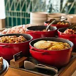 Εδώ προσφέρεται πρωϊνό σε μπουφέ κάθε πρωί. Οι πελάτες μπορούν να χαλαρώσουν και να απολαύσουν ένα σνακ στο μπαρ, τοποθετημένο στη βεράντα. Διαθέτει επίσης βεράντα και σαλόνι για την άνεση των πελατών. Το ξενοδοχείο The Social Hub Eindhoven Extended Stay απέχει 5 λεπτά με τα πόδια από το The Happiness Café και προσφέρει μεγάλη ποικιλία φαγητών.